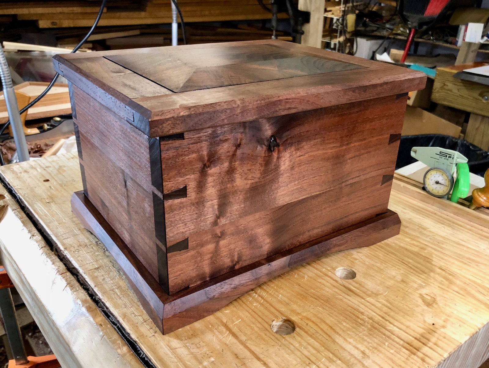 I finished construction of the urn and started applying finish. Here it is with the first coat of Boiled Linseed Oil.