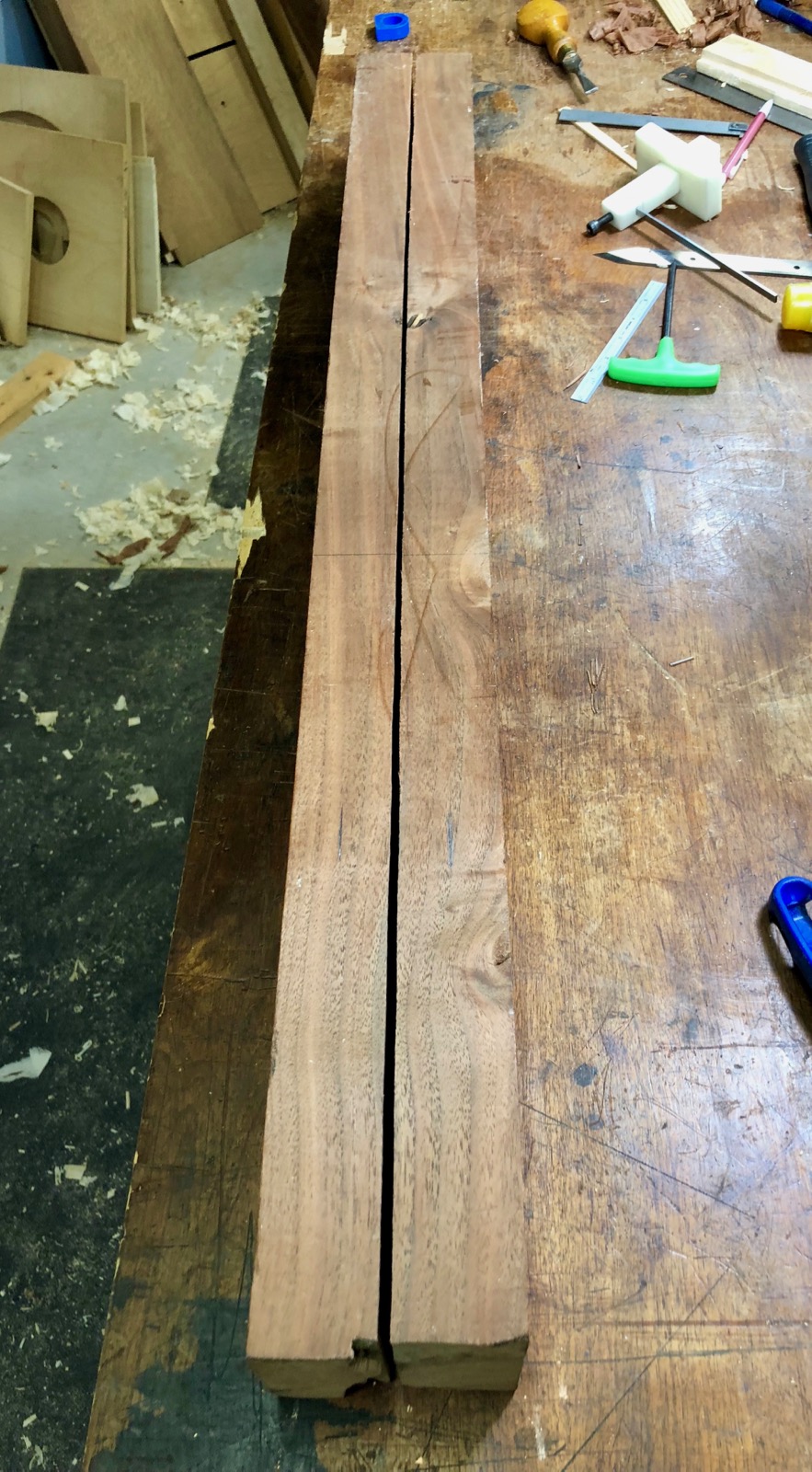 I was worried about the wood warping when cut into smaller pieces. I first cut it in half with my bandsaw and there was no movement at all. This is a sign of stable and dry wood. Walnut can be especially stable if it’s been dry for a long time.