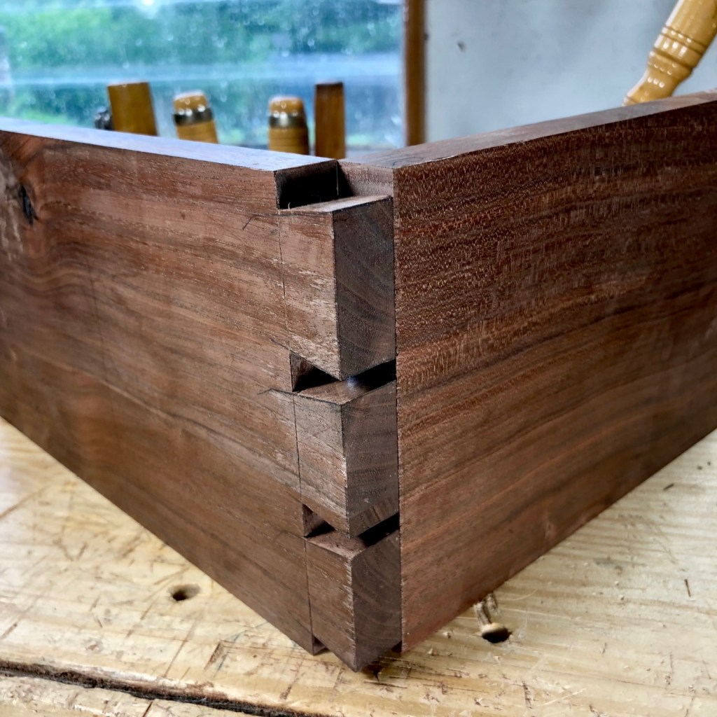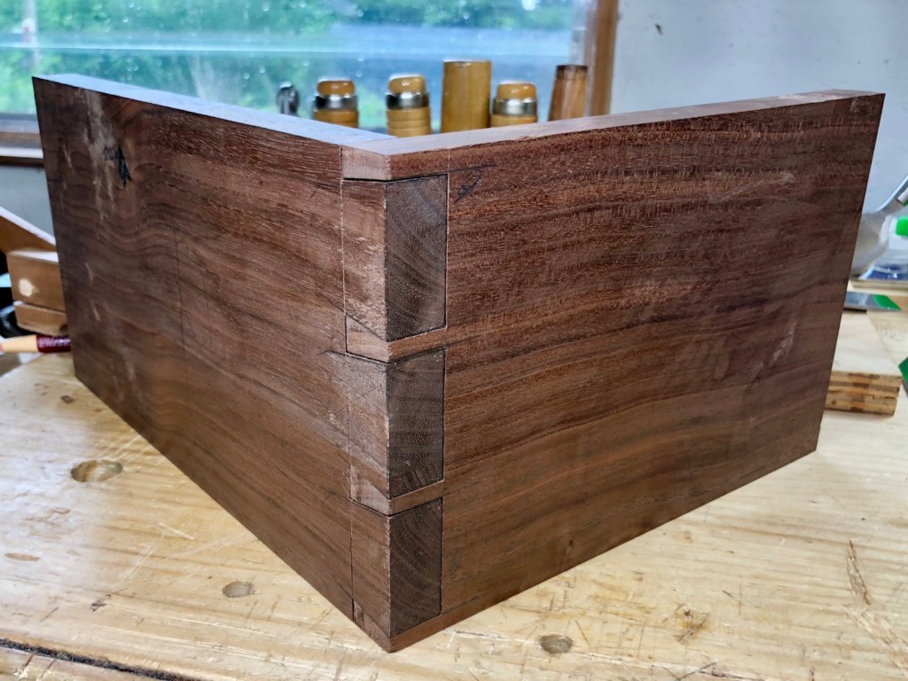 Now I just have to repeat this for the other three corners of the box. This is a very satisfying joint that is strong and looks great. It’s been used in woodworking for hundreds of years.