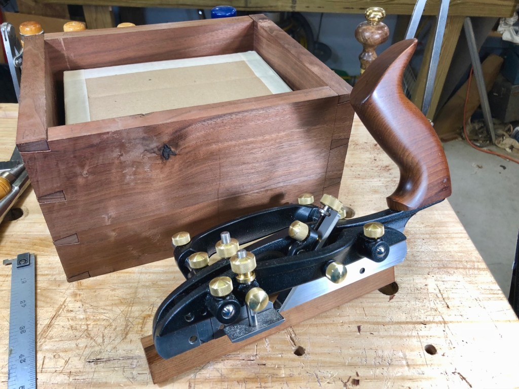 The grooves on the front and back of the box are what’s called stopped grooves. They are much more difficult to cut and I used a combination of tools. One of them was this Stanley No. 71 Router Plane that was my dad’s.