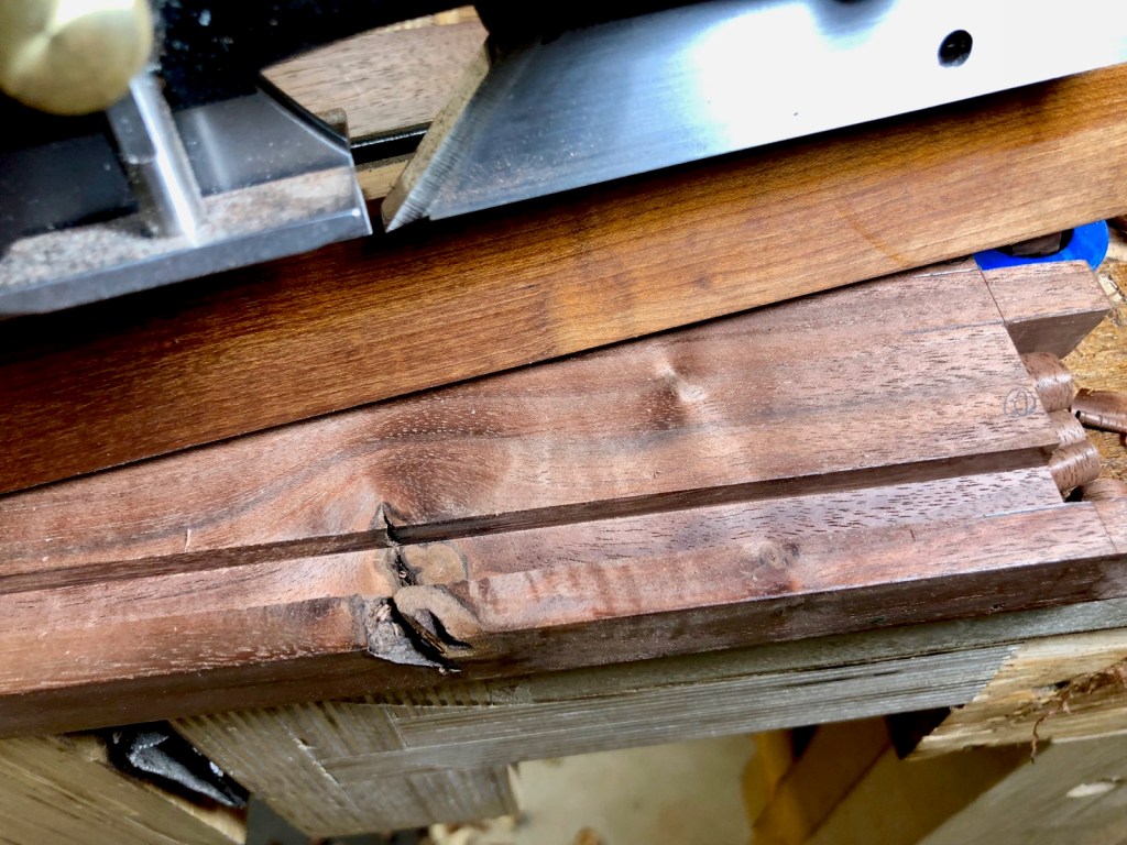 It’s a really nice tool that made quick work of the side grooves. It even went right through that hard knot without much effort. These grooves are cut all the way through the length of the sides as they won’t show.