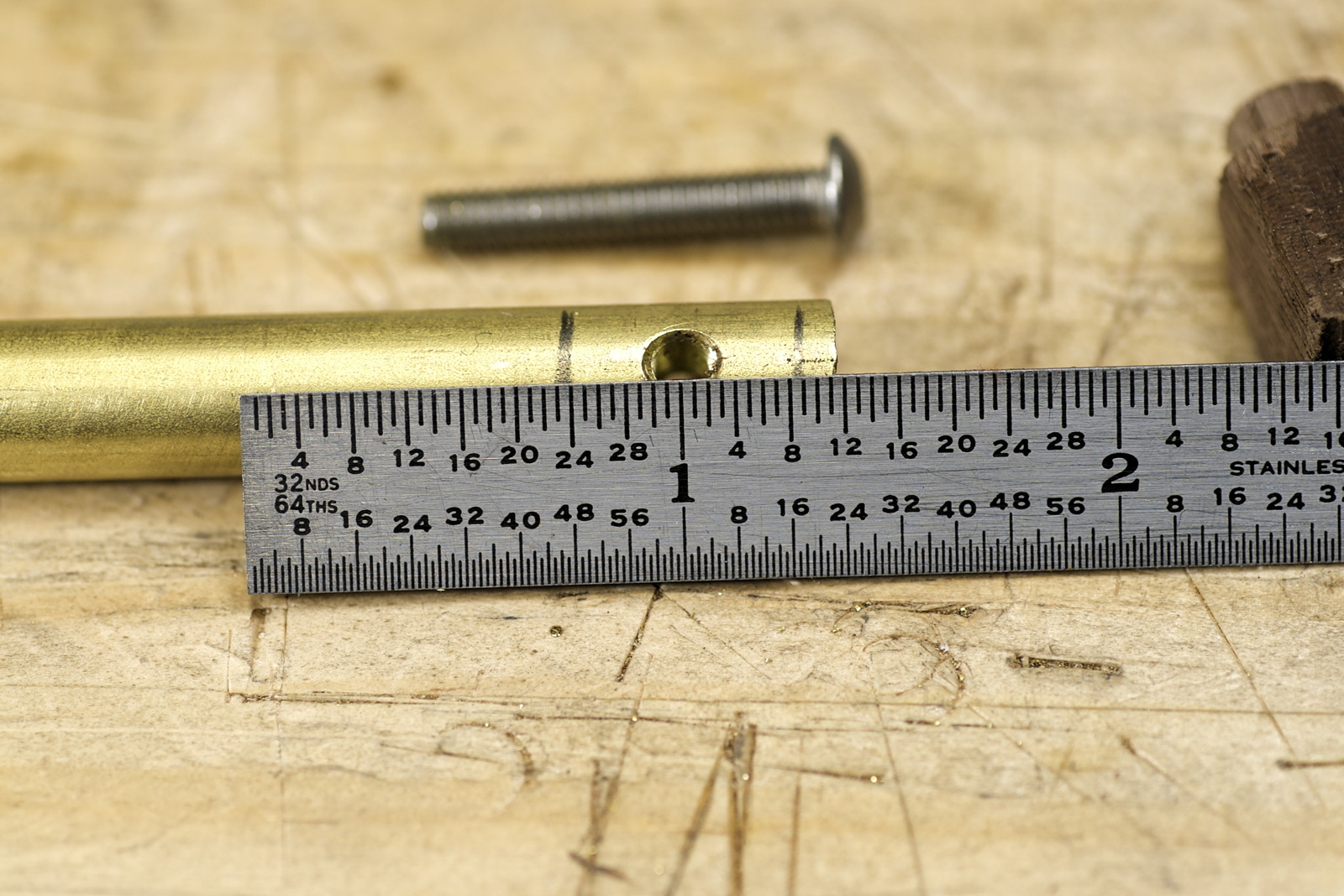 The locking bolt I’m using is a stainless steel button cap screw. I’ll add a wood knob to it in a later step.