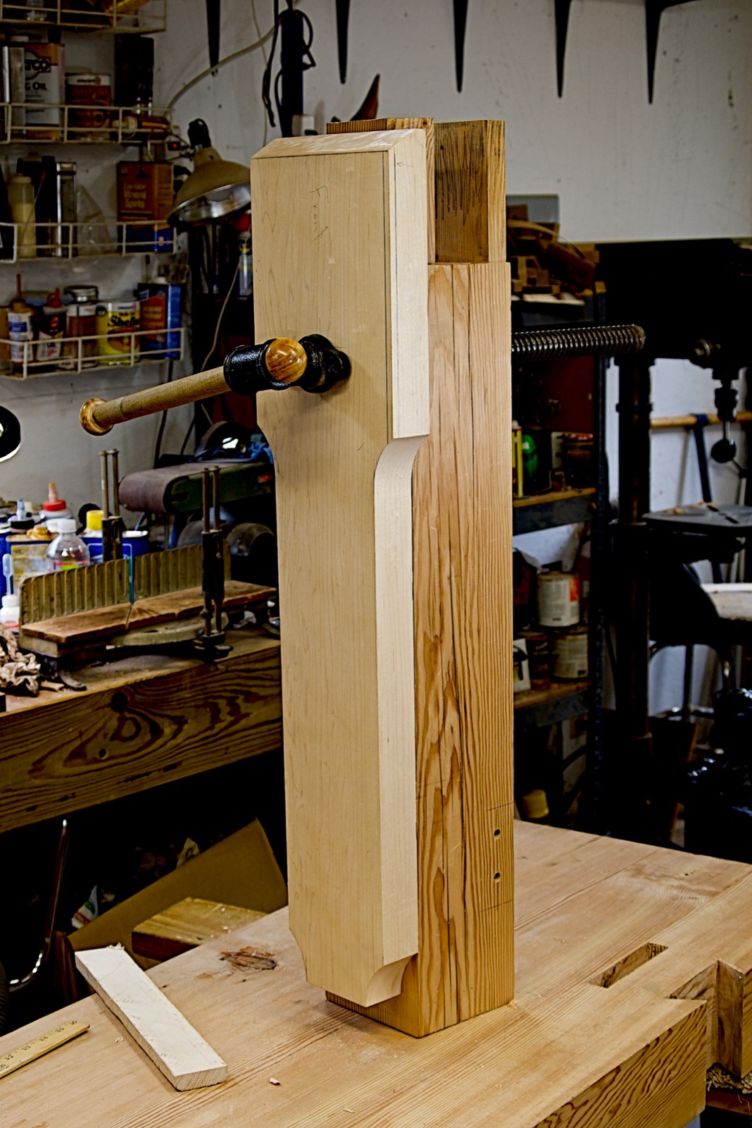 Fitting the vise to its leg was a lot easier before the bench was assembled.
